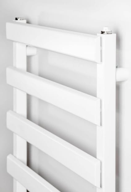 Grzejnik łazienkowy LUXRAD SCALA NEW z poziomo ułożonymi panelami nadaje wnętrzu nowoczesnego i wyrazistego charakteru. Konstrukcja w formie drabiny oraz panele w kształcie trapezu sprawiają, że model ten łączy funkcjonalność z oryginalnym designem, doskonale sprawdzając się w nowoczesnych łazienkach.