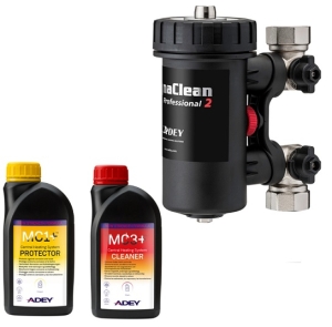 Adey Professional2 to kompleksowy zestaw filtrów wraz z płynami MC1 i MC3, który przewyższa oczekiwania w dbałości o efektywność instalacji grzewczych.